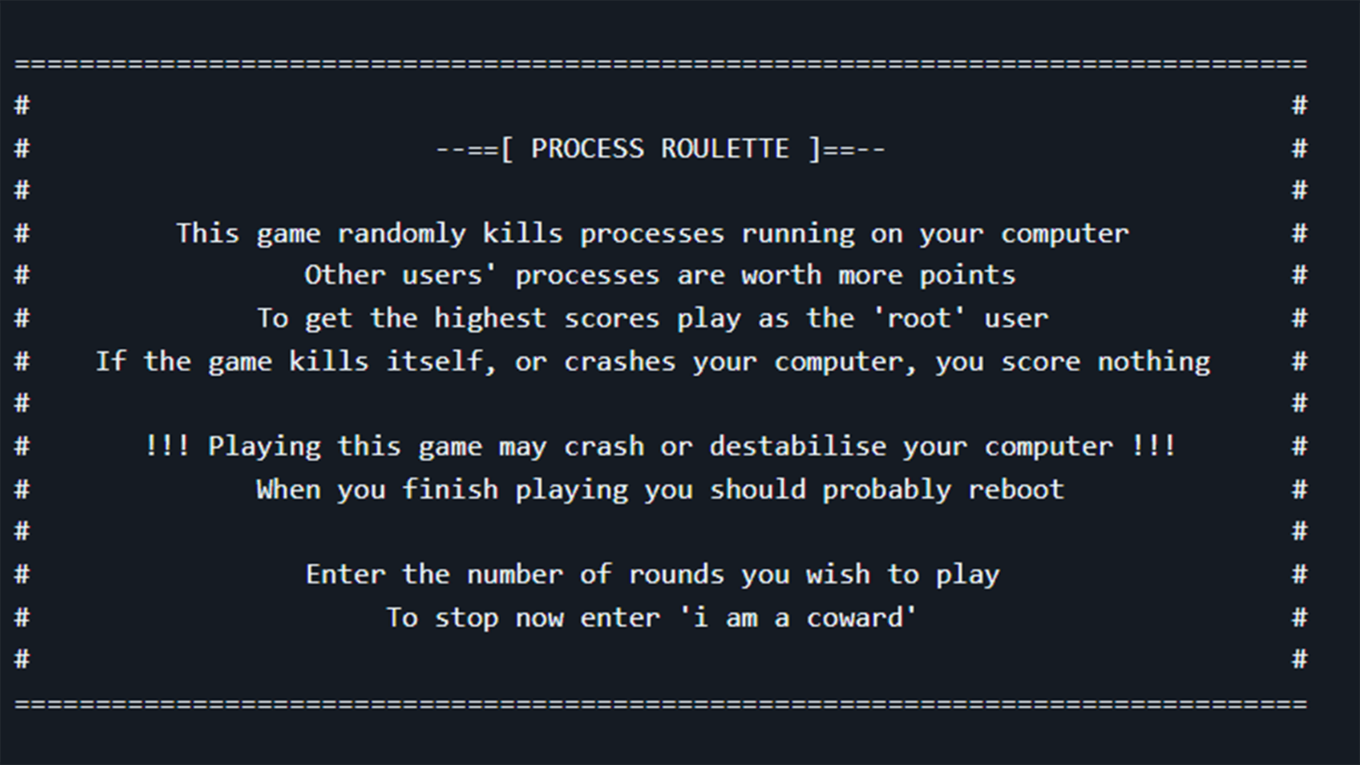 Process roulette is the name of the game. For reasons unbeknownst to mankind, there are a surprising number of applications designed to arbitrarily …, Process roulette is the name of the game. For reasons unbeknownst to mankind, there are a surprising number of applications designed to arbitrarily … , PCGaming 1 News